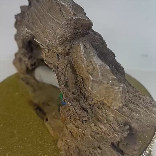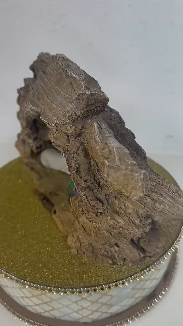Detailed Rock Crèche: The nativity scene is set within a meticulously detailed rock crèche, enhancing its authentic and rustic charm. The crèche features natural rock textures and a carefully sculpted backdrop that complements the figures and adds depth to the scene.