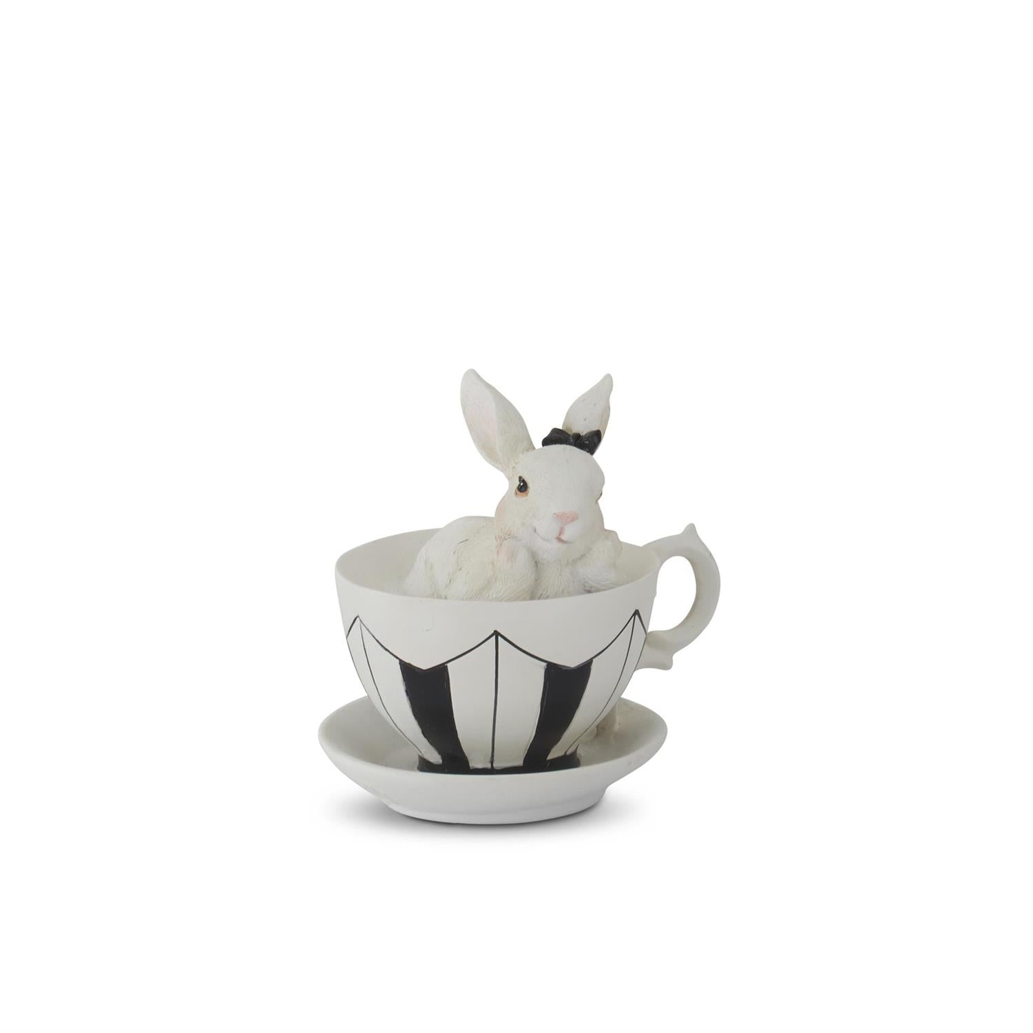3.25" White Resin Bunnies in Black & White Teacups - Set of 4
