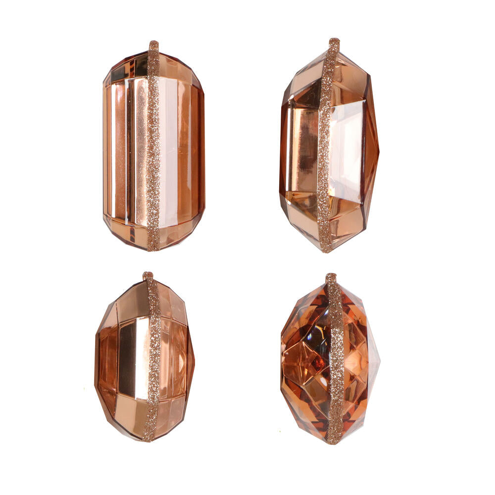 4–5″ Rose Gold Rectangle Jewel Glitter Ornaments - Set for 4