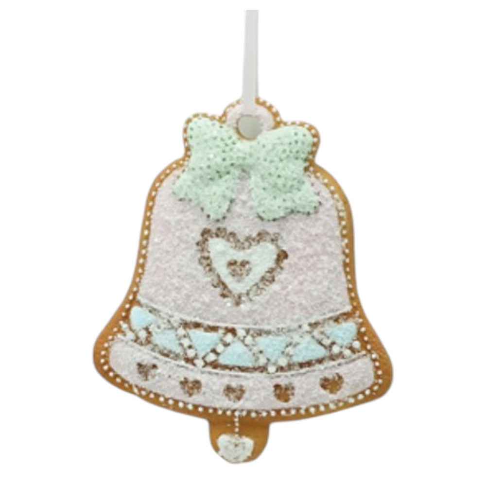 4" Pastel Gingerbread Bell Ornament – Icing & Heart Cookie Christmas Decor