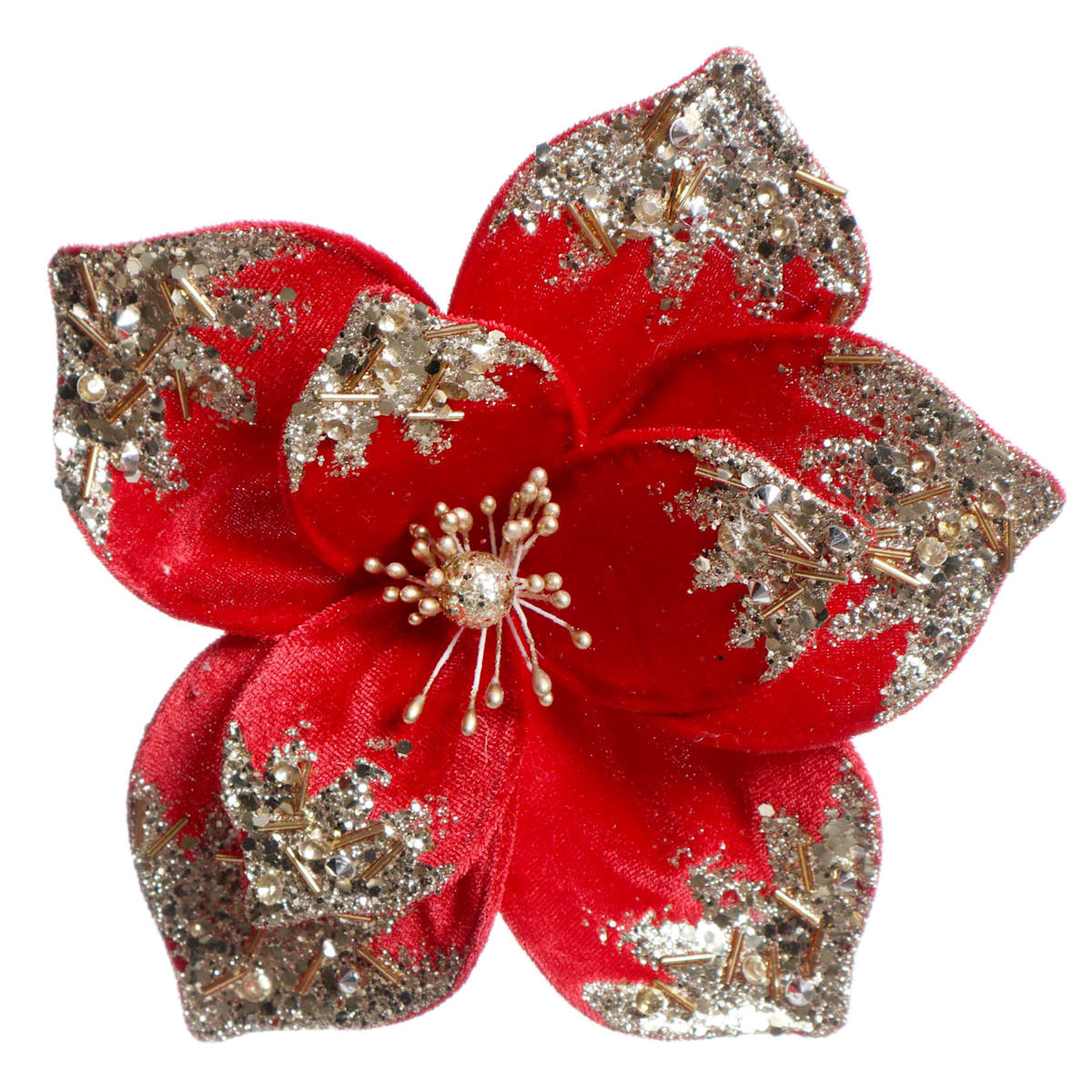8″ Red Velvet Flower Clip Ornament – Elegant Christmas Tree & Wreath Accent