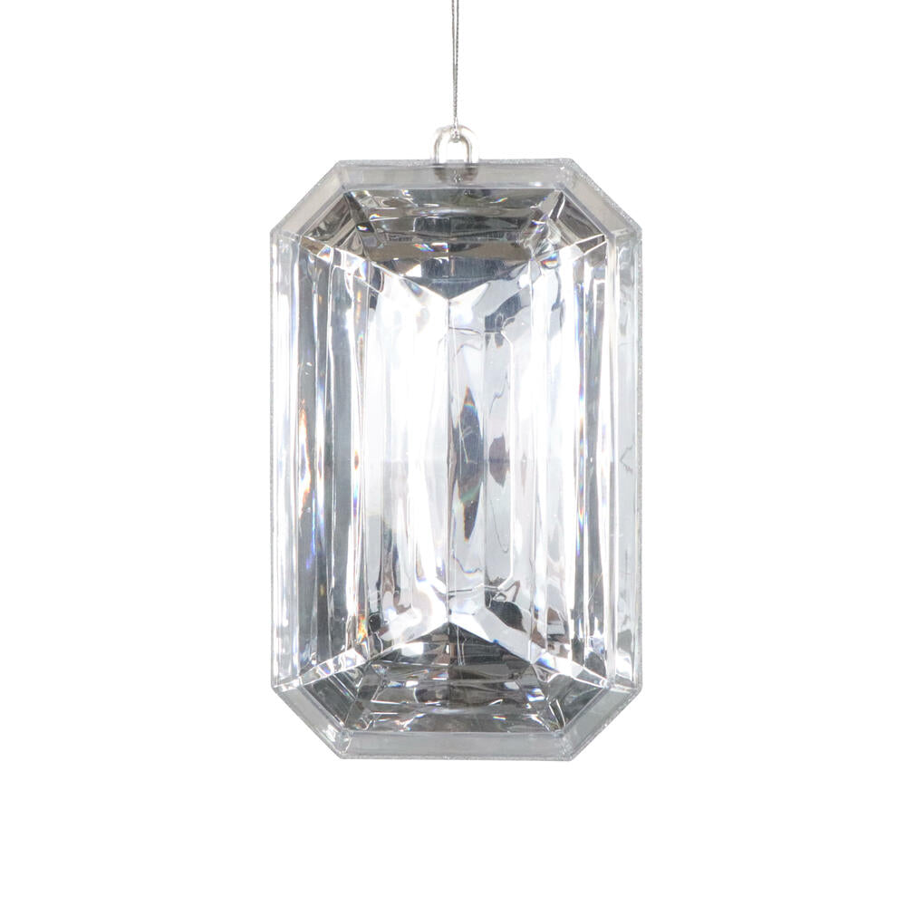 8″ Silver Rectangle Jewel Glitter Ornament – Sparkling Acrylic Jewel